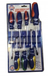 A set of screwdrivers featuring fullsize, bi-material, soft-grip handles for maximising user comfort and firm non-slip gripping