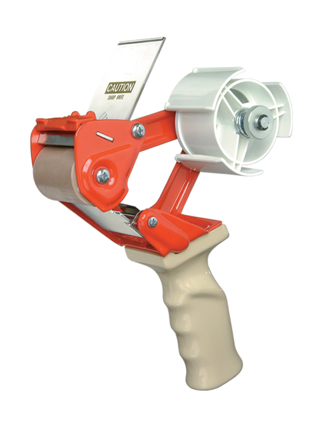 Pistol grip tape dispenser for fast, efficient carton sealing Adjustable brake and comfort handle.